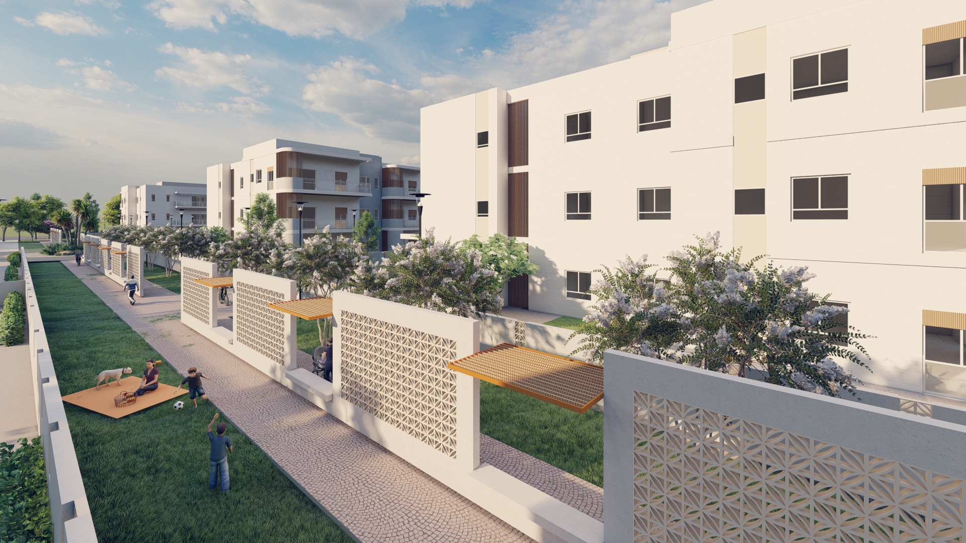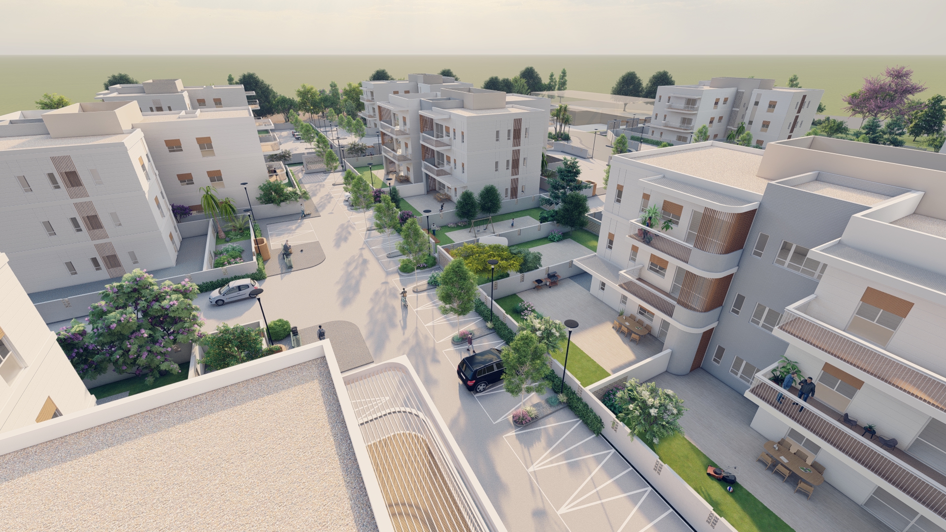 The project includes 72 residential units across 8 low-rise buildings. Two types of low-rise residential structures are being constructed using conventional building methods.